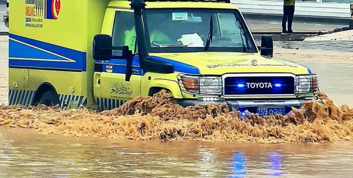عمليات إنقاذ ناجحة لمحتجزين جراء الأمطار في ولايتي صحار ولوى
