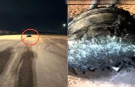 عاصفة عنيفة تُلقي بامرأة أمام السيارات المُسرعة.. وهذا ما حدث