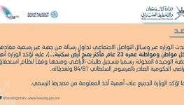 "الإسكان" تنفي شائعة توزيع الأراضي السكنية