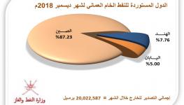 30.757 مليون برميل إنتاج السلطنة من النفط والمكثفات في ديسمبر .. والصادرات إلى الصين تتراجع 4.41%