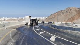 تدهور شاحنة في عقبة بوشر ووفاة سائقها.. والشرطة تغلق شارع الجبل