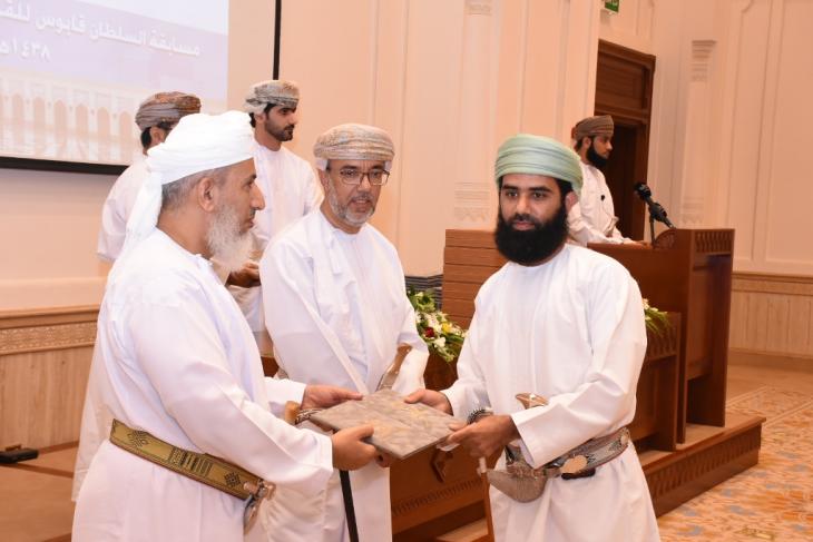 بتكليف سام من لدن حضرة صاحب الجلالة السلطان قابوس بن سعيد المعظم- حفظه الله ورعاه- رعى معالي الشيخ عبدالله بن محمد السالمي وزير الأوقاف والشئون الدينية حفل تكريم الفائزين بمسابقة السلطان قابوس للقرآن الكريم في دورتها السابعة والعشرين، وذلك بجامع السلطان قابوس بولاية صحار، بحضور سعادة الشيخ مهنا بن سيف اللمكي محافظ شمال الباطنة وعدد من المكرمين أعضاء مجلس الدولة وأصحاب السعادة أعضاء مجلس الشورى وأصحاب السعادة الولاة وجمع من مديري المؤسسات الحكومية والشيوخ وجمع من المواطنين.