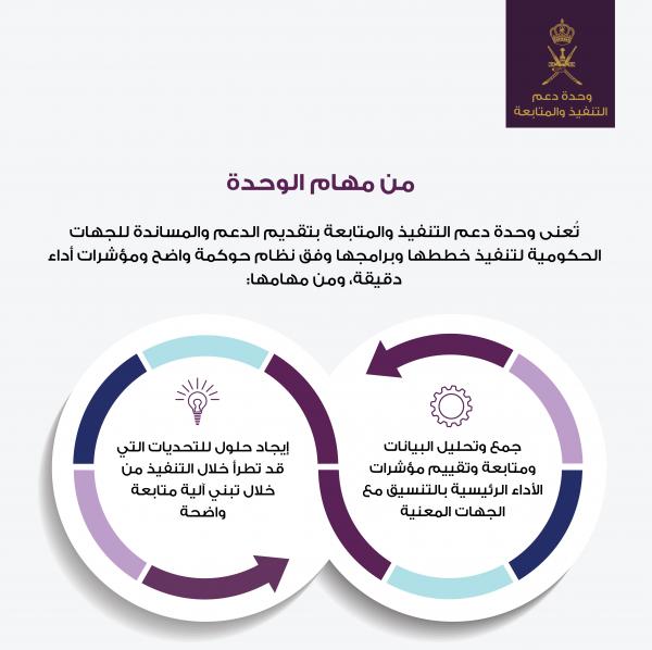 أكَّد عددٌ من المسؤولين بوحدة دعم التنفيذ والمتابعة التزامَ الوحدة بالسعي لتنفيذ سياستها ورؤيتها التي أنشئت من أجلها؛ من خلال مُتابعة ودعم مبادرات ومشاريع تعزيز التنويع الاقتصادي، ضمن الخطة الخمسية التاسعة، والتي اشتملت على 19 قطاعا للتنويع الاقتصادي؛ من أجل إيجاد بيئة أداء حكومية فاعلة لرفع الميزة التنافسية للسلطنة؛ وذلك من خلال تقديم الدعم والتسهيلات للجهات الحكومية والخاصة، وقياس مستوى الأداء فيها؛ للمساهمة في رفع عوائد التنمية الاقتصادية والاجتماعية، وجذب الاستثمارات وزيادة دخل الفرد، ودفع خطط السلطنة إلى التنفيذ، والسعي لتحقيق التنويع الاقتصادي. وأشاروا إلى أنَّ الوحدة تعمل حاليا على 8 قطاعات؛ تشمل: الصناعات التحويلية، والخدمات اللوجستية، والسياحة، وبيئة الأعمال، والمالية، وسوق العمل والتشغيل، والثروة السمكية، والطاقة، والتعدين، وتركز على جمع وتحليل البيانات، ومتابعة وتقييم مؤشرات الأداء الرئيسية، بالتنسيق مع الجهات المعنية، وإيجاد الحلول للتحديات التي قد تطرأ خلال التنفيذ، وتبني آلية متابعة واضحة، منذ إنشائها بالمرسوم السلطاني رقم 50/2016م في 17 أكتوبر من العام 2016م.