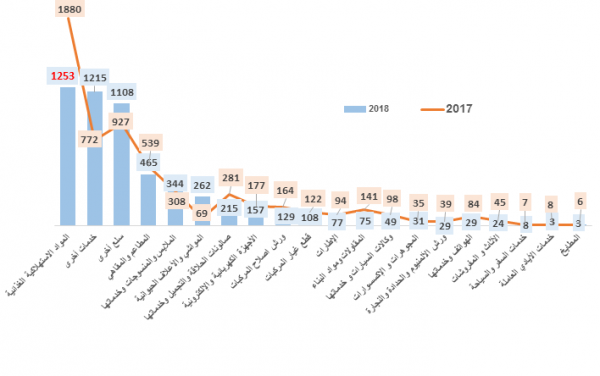 كشف التقرير التحليلي للمديرية العامة للدراسات والتطوير بديوان عام الهيئة العامة لحماية المستهلك انخفاض معدل البلاغات للعام 2018م، حيث بلغ إجماليها (5584) بلاغاً مقارنة بـ (5796) بلاغًا في عام 2017م.