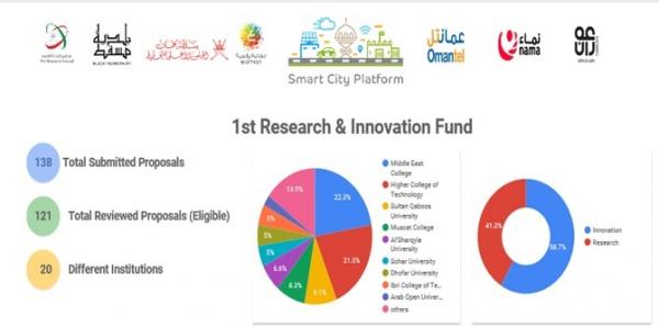 كما حصلت كل من جامعة السلطان قابوس وجامعة صحار بتمويل لمقترحاتهم البحثية، في مجالات الحوكمة والبيئة بعنوان منهجية ذكية لقياس انطباع الرأي العام لخدمات المدن الذكية للباحث الرئيسي خالد عمر من جامعة صحار، ومقترح بحثي بعنوان الشوارع الذكية، الردود والتغذية اللحظية من خلال تطبيق إشارات مرور ذكية قابلة على التكيف والتعلم الآلي للباحث الرئيسي محمد سراب من جامعة السلطان قابوس.
