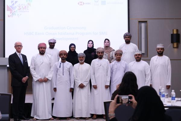 احتفل صندوق تنمية مشروعات الشباب (شراكة) بتخرج المستفيدين من برنامج استدامة لتنمية المؤسسات الصغيرة والمتوسطة الذي يدعمه بنك إتش إس بي سي عمان، وذلك بالتعاون مع مؤسسة الوجهة للاستدامة. ورعى الحفل هاني بن محمد الزبير، رئيس مجلس إدارة صندوق تنمية مشروعات الشباب (شراكة)، بحضور أندرو بي لونج –الرئيس التنفيذي لبنك إتش إس بي سي عمان، وممثلي البنك وعدد من الموظفين والمسؤولين من الجهات الداعمة لريادة الأعمال.