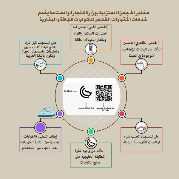 تجري وزارة التجارة والصناعة اختبارات فحص للكوايات الجافة والبخارية، محلية الصنع منها أو المستوردة، طبقا للمواصفات العمانية والمواصفات الخليجية، ومن خلال تطبيق اللائحة الفنية الخليجية للأجهزة والمعدات الكهربائية منخفضة الجهد.