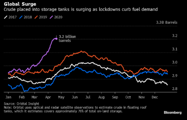 وتوضح بيانات حديثة وصول مخزونات النفط عالميا إلى أكثر من 3.2 مليار برميل حاليا وهو ما يؤكد استمرار انخفاض الطلب على النفط لشهور قادمة وحتى استنفاذ الفائض من الخزانات.