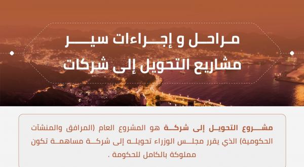 تعد عملية تحويل المرافق والمنشآت الحكومية إلى شركة حكومية، الخطوة الأولى لتخصيص المشروع العام، وذلك بهدف رفع الكفاءة الإنتاجية والقوة السوقية والتنافسية للمشروع قبل طرحه للتخصيص أمام المستثمرين.