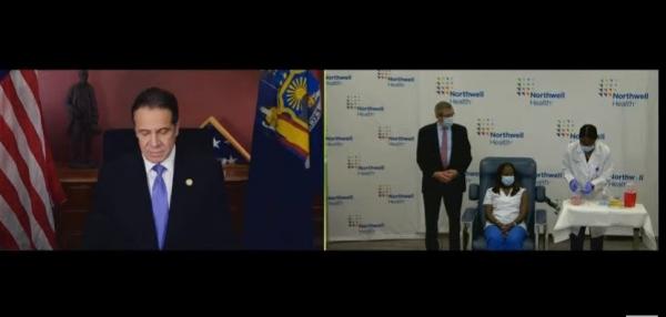 بدأت منذ قليل عملية التطعيم ب لقاح فايزر بايونتيك المضاد لكوفيد-19 في نيويورك بأمريكا.