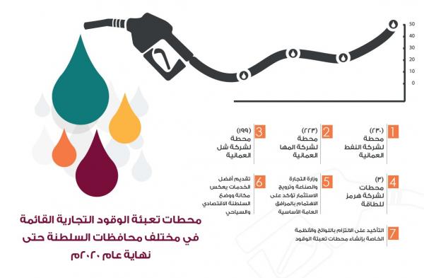 وأوضح خميس بن خلفان الوهيبي القائم بأعمال رئيس قسم تراخيص المنتجات النفطية بوزارة التجارة والصناعة وترويج الاستثمار قائلا: محطات تعبئة الوقود تمثلت في (230) محطة لشركة النفط العمانية و(223) محطة لشركة المها العمانية و(199) محطة لشركة شل العمانية و(3) محطات لشركة هرمز للطاقة.