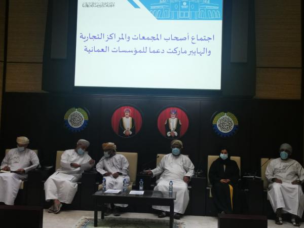 عقدتْ غرفة تجارة وصناعة عمان اجتماعًا مع أصحاب المجمَّعات والمراكز التجارية والهايبرماركت؛ وذلك بحضور سعادة المهندس رضا بن جمعة آل صالح رئيس مجلس إدارة الغرفة، وسعادة الدكتور صالح بن سعيد مسن وكيل وزارة التجارة والصناعة وترويج الاستثمار للتجارة والصناعة، وسعادة حليمة بنت راشد الزرعية رئيسة هيئة تنمية المؤسسات الصغيرة والمتوسطة، وبحضور عدد من ممثلي المحلات والمجمعات التجارية الكبيرة في السلطنة، وذلك في مقر الغرفة الرئيسي بمسقط.