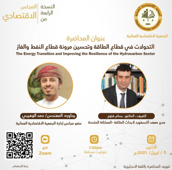 تستعرضُ الجمعية الاقتصادية العُمانية، غدا الإثنين، في النسخة الرابعة من المجلس الاقتصادي: "التحولات في قطاع الطاقة وتحسين مرونة قطاع النفط والغاز"؛ إذ تستضيف عبر تطبيق "زووم" الدكتور بسام فتوح مدير معهد أكسفورد لأبحاث الطاقة بالمملكة المتحدة، فيما يدير الجلسة المهندس حمد الوهيبي عضو مجلس إدارة الجمعية.
