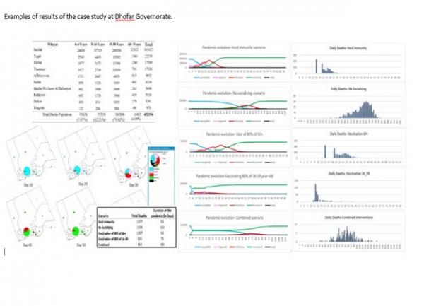 والدراسة ممولة من وزارة التعليم العالي والبحث العلمي والابتكار، ضمن البرنامج البحثي الإستراتيجي لمواجهة جائحة كورونا (كوفيد 19)، وأجراها الباحث الدكتور هادي حداد وفريقه البحثي من كلية الآداب والعلوم التطبيقية في جامعة ظفار. وأشار حداد إلى أن الدراسة هدفت إلى تطوير نظام إلكتروني ذكي للمساعدة في اتخاذ القرارات يمكن أن يستخدم من قبل الجهات المختصة؛ وذلك لتحديد واختبار تأثير إجراءات التحكم المختلفة (مثل: تقليل عدد العاملين في أماكن العمل، وإغلاق المدارس، وتقليل الأنشطة الاجتماعية، والتطعيم...وما إلى ذلك). وأوضح أن المشروع استخدم طريقتين مختلفتين، وهما: النمذجة والمحاكاة، مشيرا إلى أنَّ الطريقة الأولى تحاكي انتشار الجائحة في فئات اجتماعية مختلفة تعيش في منطقة حضرية معينة مثل محافظة أو ولاية أو مدينة من خلال المخالطة المجتمعية، أما الطريقة الثانية فهدفت إلى دراسة دور النقل الجماعي (الحافلات الخاصة) في انتشار الوباء في مدينة محددة على سبيل المثال محافظة ظفار؛ حيث يتم استخدام الحافلات الجماعية الصغيرة كبديل للنقل العمومي، وأشار الدكتور إلى أنَّ النتائج واعدة، لكن يجب إجراء العديد من التجارب باستخدام بيانات حقيقية وتفصيلية من أجل اختبار بيانات النظام بشكل أفضل.