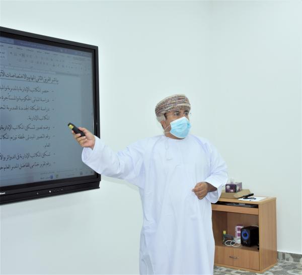 وهدف اللقاء إلى مناقشة المستجدات التربوية والإدارية وتقييم الخطط التشغيلية؛ وذلك بمركز التدريب والإنماء المهني بنزوى. وقدم علي بن محمد الشكيلي المدير العام المساعد للشؤون الإدارية والمالية والمشاريع ورقة عمل بعنوان "كن قائداً مؤثرًا"، تناول فيها مناقشة عدد من المحاور كتفويض الصلاحيات وصناعات قيادات الصف الثاني وتقبل النقد البناء والمساءلة الإدارية وحل المشكلات والصعود إلى الأعلى وتطبيقها ميدانيًا في المدرسة. واستعرض سلام بن سالم التوبي مدير مساعد بدائرة الشؤون الإدارية ورقة عمل حول تحديات ومقترحات العمل وتطويره لدائرة الشؤون الإدارية بالمديرية العامة للتربية والتعليم لمحافظة الداخلية 2020/ 2021. بعدها قدم هلال بن عبدالله العلوي مدير مساعد بدائرة تقنية المعلومات ورقة عمل بعنوان "التقنية عالم يقودك إلى التميز في الأداء"؛ استعرض فيها أربعة محاور المحور الأول حمل عنوان "كيف علينا أن نستلهم قوتنا من رؤية 2040"، أما المحور الثاني تحدث عن "إحصائيات تقنية ومؤشرات لقياس أين نحن"، أما المحور الثالث فقد ركز على "السياسات الأمنية"، واختتم العلوي بالحديث عن المحور الرابع عن المبادرات التقنية ومخرجات الموظفين المبدعين.