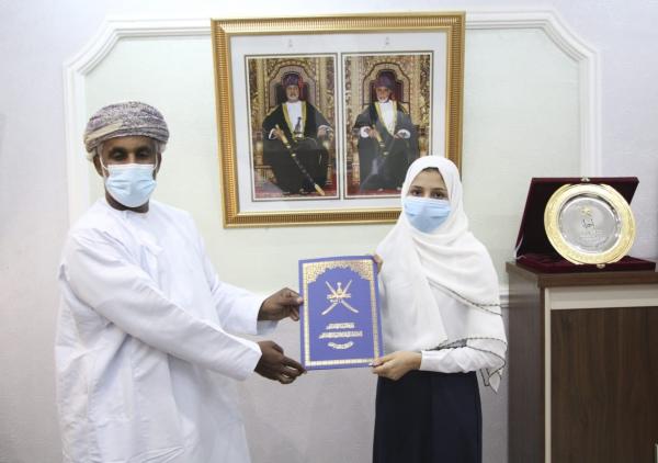 سلم الدكتور سالم بن سعيد المعشني مدير عام المديرية العامة للتربية والتعليم بمحافظة الوسطى التكريم الوزاري المقدم من وزارة التربية والتعليم لفريق مدرسة ظهر المشارك في برنامج جلوب البيئي؛ وذلك لحصوله على الإجادة ضمن البحوث المجيدة على مستوى التكريم المركزي بالسلطنة، وذلك بحضور الفريق المكرم وعلي البوسعيدي المدير المساعد للإشراف التربوي ورئيس الفريق المحلي لبرنامج جلوب البيئي.