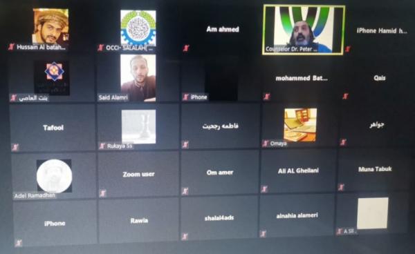 نظم فرع غرفة تجارة وصناعة عمان بمحافظة ظفار متمثلا بوحدة الدعم الفني(WAFI) دورة تدريبية عبر تطبيق الاتصال المرئي زووم لأصحاب وصاحبات الأعمال بمحافظة ظفار، بعنوان "الترويج والتسويق"، بحضور المهندس حسين بن حثيث البطحري رئيس مجلس إدارة فرع الغرفة بمحافظة ظفار من أصحاب وصاحبات الأعمال بالمحافظة.
