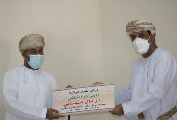 بعدها كرَّم سعادة راعي الحفل الفائزين؛ حيث حصل على المركز الأول في المجموعة الأولى البراء بن أيوب الرواحي، وجاءت في المركز الثاني ريما بنت محمود الحسينية، وحصل على المركز الثالث شيماء بنت إبراهيم المنذرية، وجاء في المركز الرابع ضياء بنت خالد الأغبرية. أما في المجموعة الثانية، فحصل على المركز الأول القارئ محمد علي المرغلي، والمركز الثاني القارئ قابوس بن العزري، والمركز الثالث القارئ محمد بن ناصر التوبي، وجاء في المركز الرابع سلطان بن حمود الناعبي.