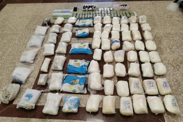 وعُثر بحوزته على  أكثر من 110 كيلوجرامات لأنواع مختلفة من المخدرات، إضافة لكمية كبيرة من المؤثرات العقلية، والقضية قيد الإجراءات.