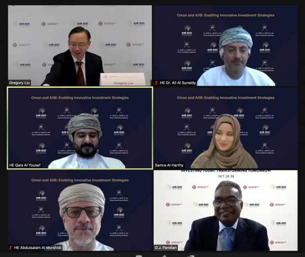استضافت السلطنة ممثلة بجهاز الاستثمار العماني مؤخرًا ندوة "تمكين إستراتيجيات الاستثمار المبتكرة" لمجلس محافظي بنك آسيا للاستثمار في البنية الأساسية، التي تأتي تمهيدًا للاجتماع السنوي للبنك في أكتوبر من العام الجاري، حيث تحدث فيها عددٌ من أصحاب المعالي وكبار المسؤولين من السلطنة والبنك، وذلك عبر الاتصال المرئي.