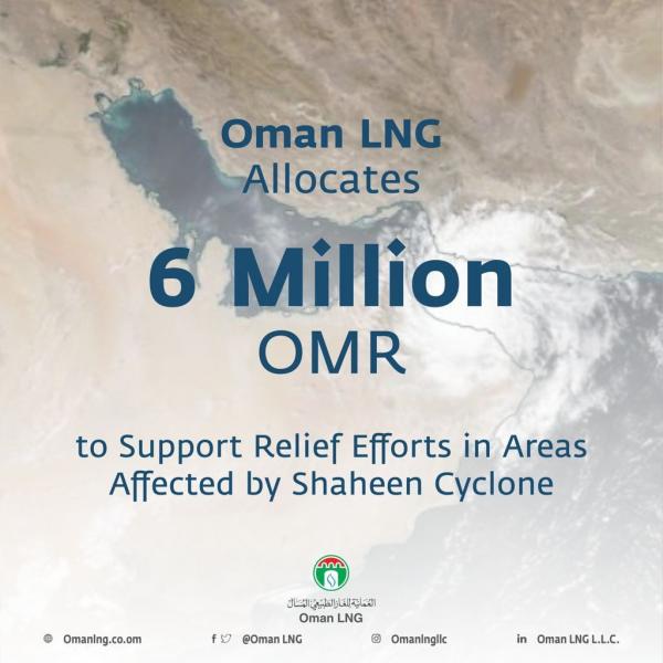 اعتمدت الشركة العمانية للغاز الطبيعي المسال 6 ملايين ريال عماني للمساهمة في تعزيز الجهود الرامية إلى تخفيف الآثار المترتبة على إعصار "شاهين".