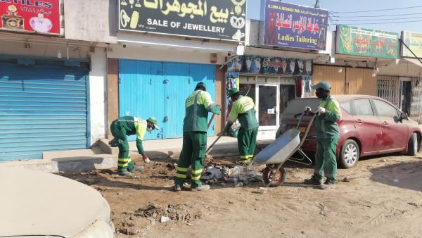 وتتمثل أعمال فرق البلدية في فتح الشوارع والطرق المتضررة بإزالة أكوام الرمال والأتربة وبقايا الأشجار  والمخلفات؛ لتسهيل الحركة المرورية أمام المركبات والمشاة، وإعادة تهيئة بعض المرافق الخدمية من بينها أعمال الإنارة وصيانة الشوارع الداخلية ومداخل الأحياء والمناطق المتضررة، والقيام بجهود الإصحاح البيئي بكنس وتنظيف الشوارع، إضافة إلى تنظيف السكك والميادين والأسواق، وكبس المواقع المنخفضة والبرك المائية، والتقليل من تجمعات العوالق والأوساخ، إلى جانب جمع المخلفات ورميها في الأماكن المخصصة لها، ومعالجة تجمعات المياه السطحية، وكذلك التعامل مع الملاحظات الواردة في هذا الجانب حسب الإمكانيات المتوفرة، ومن المؤمل أن تستمر هذه الجهود على مدى 10 أيام متواصلة قابلة للتمديد.