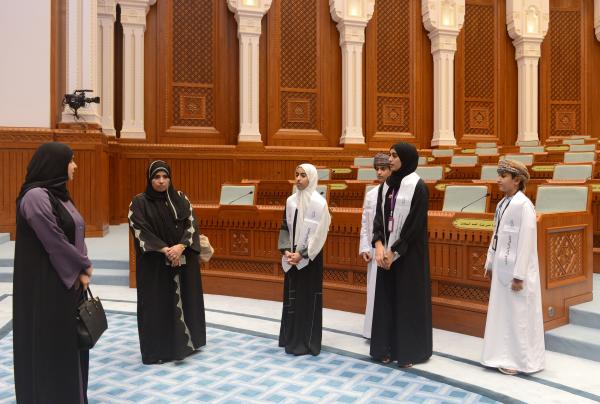 وكان في استقبال الطلبة المكرمة الدكتورة ريا بنت سالم المنذرية عضوة مكتب المجلس، والدكتور أحمد بن حميد الشبلي الأمين العام المساعد لشؤون الجلسات واللجان. وفي مستهل اللقاء، رحبت المكرمة الدكتورة بالطلبة، منوهة بدور البرلمان في رفع الوعي لدى الطفل العربي بالعمل البرلماني، وفي ترسيخ قيم الديمقراطية والمساواة والمشاركة في صنع القرار، إضافة إلى مناقشته لأفكار واهتمامات أطفال الدول العربية فيما يخصهم من قضايا الطفولة وحمايتها. وأكدت المكرمة حرص المجلس على مد جسور التواصل مع المجتمع توثيقًا لصلاته مع كافة أطيافه، وانطلاقًا من اهتمامه بنشر الثقافة البرلمانية بين مختلف الشرائح المجتمعية، والتعريف باختصاصاته التشريعية والمالية.