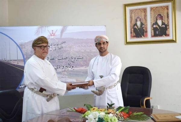 وقِّعت أمس بمحافظ شمال الشرقية اتفاقية لرصف الطرق الداخلية بولاية وادي بني خالد بطول 16 كيلومترًا و438 مترا بمبلغ قدره مليونان وثلاثة عشر ألفا ومائتين وستة وثمانين ريالا عمانيا وتسعة وخمسين بيسة.