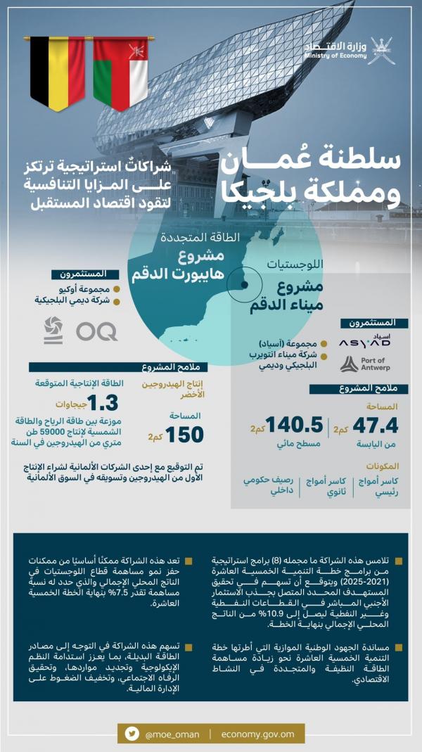 قالت وزارة الاقتصاد إن مشروعي ‎ميناء الدقم، وهايبورت الدقم يمثلان نموذجًا للشراكة الاستراتيجية بين ‎سلطنة عُمان و‎مملكة بلجيكا.