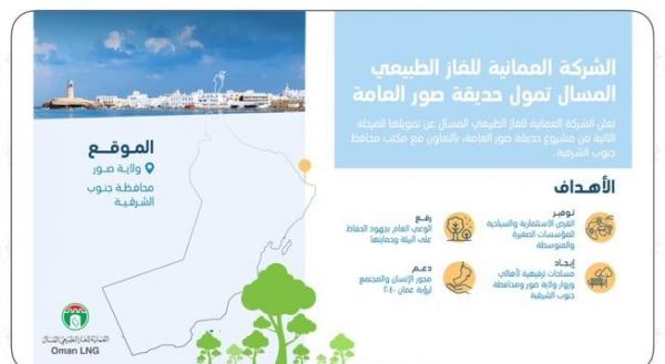 أعلنت الشركة العُمانية للغاز الطبيعي المُسال عن تمويل المرحلة الثانية من مشروع حديقة صور العامة بالتعاون مع مكتب محافظ جنوب الشرقية، بتكلفة إجمالية تُقدر بـ3 ملايين ريال عُماني.