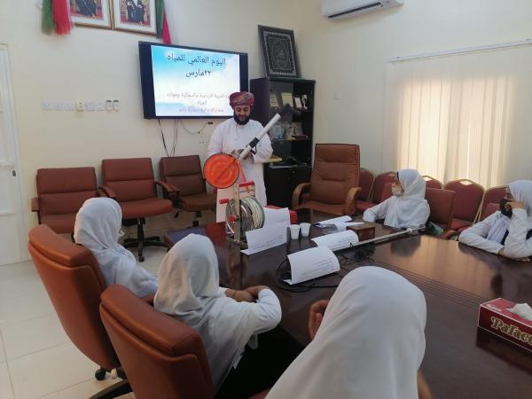 نظمت دائرة البلدية بولاية أدم بالتعاون مع دائرة التنمية الزراعية وموارد المياه، برنامجا توعويا بمناسبة اليوم العالمي للمياه، استهدفت خلاله طالبات مدرسة فاطمة بنت حزام للتعليم الأساسي وذلك بقاعة التوعية والاجتماعات بالبلدية.