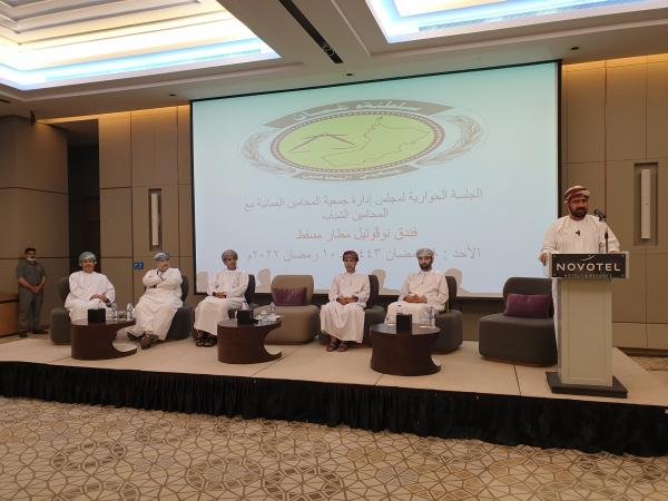 نظمت جمعية المحامين العمانية، جلسة حوارية لمناقشة واستشراف مستقبل مهنة المحاماة في ضوء قانون محاماة مرتقب، وأقيمت الجلسة بهدف الاستماع إلى آراء المحامين الشباب وإشراكهم فيما يعزز أدوارهم بشأن مهنة المحاماة ومستقبلها في سلطنة عُمان.