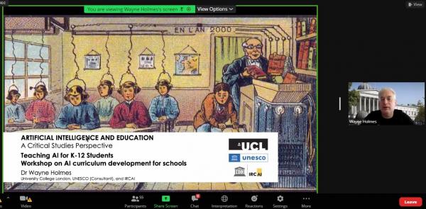 وتضمن البرنامج التدريبي في يومه الأول جلسة افتتاحية، ترأسها فنغتشون مياو رئيس وحدة التكنولوجيا والذكاء الاصطناعي في التعليم بمنظمة اليونسكو. وألقى الدكتور محمود بن عبدالله العبري مساعد أمينة اللجنة الوطنية العمانية للتربية والثقافة والعلوم كلمةً، أكد فيها أن سلطنة عمان خطت خطوات جادة في مجال الذكاء الاصطناعي، لأجل إدماجه في نواحي الحياة المختلفة، مضيفا  أن جائحة كوفيد-19 فرضت التفكير جدياً في تسريع وتيرة العمل نحو تفعيل الذكاء الاصطناعي، حيث لجأت مدارس العالم إلى الاستعانة بالتعليم عن بعد لتجنب عرقلة العملية التعليمية.