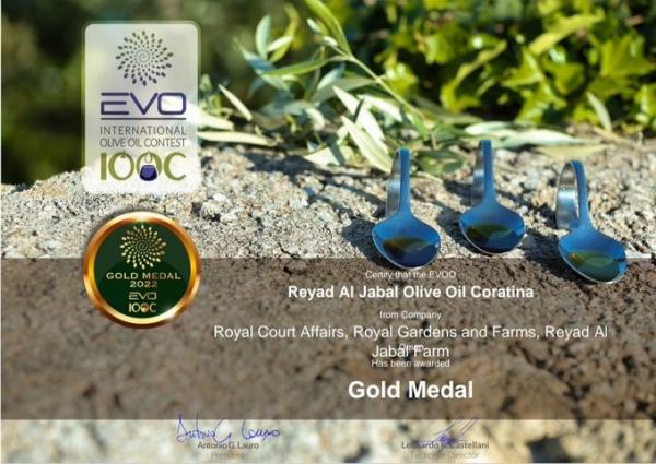 تُوِّج منتج زيت الزيتون البِكر الممتاز المنتج من مزرعة "رياض الجبل" بالجبل الأخضر بأربع ميداليات: ذهبيتان وفضيتان؛ وذلك نظير جودته العالية ومطابقته للمواصفات والمعايير العالمية.