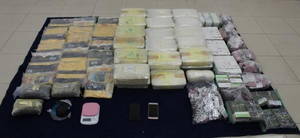 تمكنت الإدارة العامة لمكافحة المخدرات والمؤثرات العقلية من القبض على متهم من جنسية آسيوية بتهريب المواد المخدرة، والاشتراك مع عصابات دولية حيث ضبط بحوزته أكثر من 43 كيلوجراما من مخدر الكريستال وأكثر من 25 كيلوجراما من مخدر الحشيش وكميات من مخدر الأفيون والمؤثرات العقلية، وجارٍ اتخاذ الإجراءات القانونية بحقه.