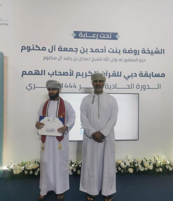 حصل المتسابق العُماني ليث بن إسحاق بن يوسف الكندي على المركز الثالث في مسابقة دبي للقرآن الكريم لأصحاب الهمم في دورتها الحادية عشرة لعام 1444هـ.