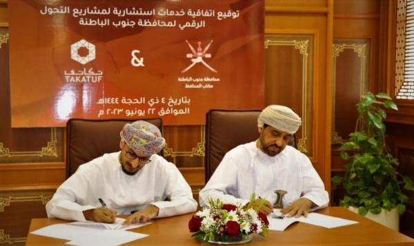 وقّع على الاتفاقية سعادة الشيخ سيف بن حمير الشحي محافظ جنوب الباطنة وإبراهيم بن محمد الحارثي الرئيس التنفيذي لشركة تكاتف عُمان، حيث تنص الاتفاقية على أن تكون الشركة هي الاستشاري والمشرف لدعم ومتابعة تنفيذ مشروعات التحول الرقمي للمؤسسات الحكومية في المحافظة.