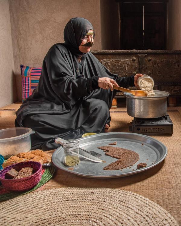 وأضافت: "توزع هذه الحلوى على الجيران والأصدقاء ولا يخلو بيت منها في ليلة التاسع من ذي الحجة وصباح العيد، حيث تعد عادة متوارثة في المحافظة تدل على الكرم وعلى روح الانسجام والترابط والتعاون الاجتماعي بين الأسر، كما أنها عادة مستمرة حتى يومنا في بعض القرى، وقد قامت بعض الأسر بإضافة بعض اللمسات الحديثة عليها كإضافة المكسرات وتشكيلها بأشكال مختلفة مع الاحتفاظ بطعمها الأصيل".