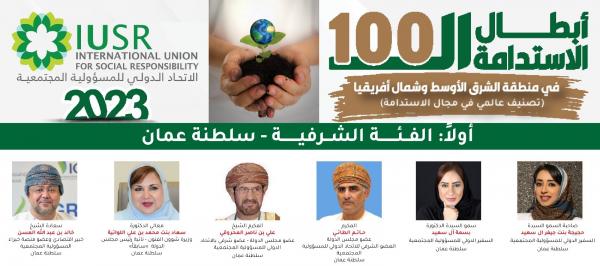 وضمت القائمة شخصيات رفيعة المستوى ومؤثرة من دول الشرق الأوسط وشمال أفريقيا، ومن بينها شخصيات عُمانية بذلت جهودًا مُقدّرة في مجال الاستدامة والممارسات المسؤولة. ومن أبرز الشخصيات العمانية التي ضمها هذه التصنيف العالمي في فئتيه الشرفية والمهنية، هم من الفئة الشرفية: صاحبة السُّمو السيدة حجيجة بنت جيفر آل سعيد السفير الدولي للمسؤولية المجتمعية، وجناب السيدة الدكتورة بسمة آل سعيد السفير الدولي للمسؤولية المجتمعية، والمكرم حاتم بن حمد الطائي عضو مجلس الدولة السفير الدولي للمسؤولية المجتمعية، إضافة إلى المكرم الشيخ علي بن ناصر المحروقي عضو مجلس الدولة، العضو الشرفي بالاتحاد الدولي للمسؤولية المجتمعية، والدكتورة سعاد بنت محمد بن سليمان اللواتية وزيرة شؤون الفنون سابقًا ونائبة رئيس مجلس الدولة سابقًا، والشيخ خالد بن عبد الله المسن خبير اقتصادي وعضو منصة الخبراء العرب في مجال المسؤولية المجتمعية.