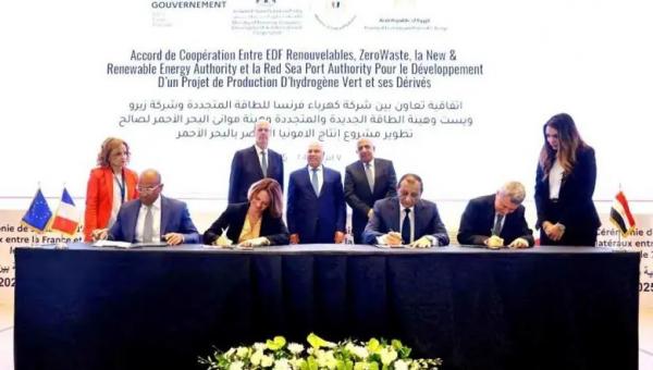 أعلنت وزارة النقل المصرية أن مصر وفرنسا وقعتا اتفاقية بقيمة سبعة مليارات يورو (7.68 مليار دولار) لتمويل وتشغيل منشأة لإنتاج الهيدروجين الأخضر.