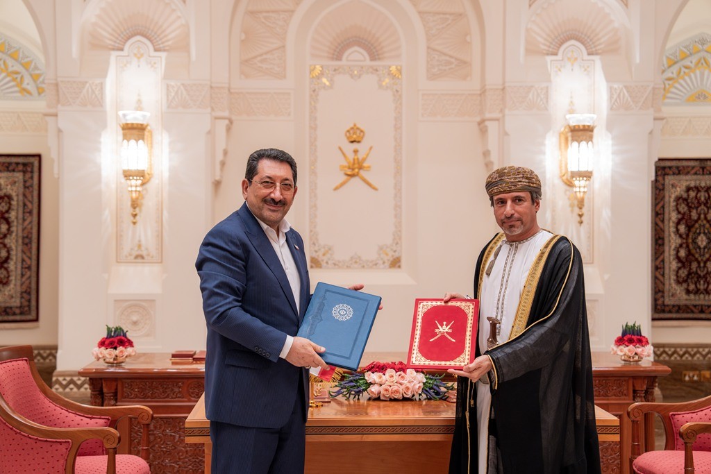 شهد حضرة صاحب الجلالة السُّلطان هيثم بن طارق المعظم- حفظه الله ورعاه- وفخامة الرئيس الدكتور مسعود بزشكيان رئيس الجمهورية الإسلامية الإيرانية أمس، التّوقيع على 5 اتفاقيات تعاون و10 مذكرات تفاهم و3 برامج تنفيذيّة وتدشين طابع بريدي بقصر العلم العامر، وذلك في إطار الزيارة الرسمية التي يقوم بها فخامة الرئيس الإيراني للبلاد.