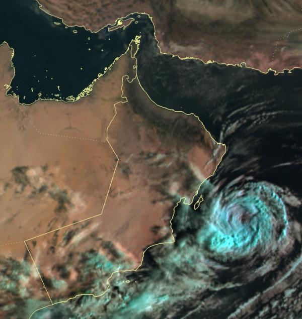 توضح آخر صور الأقمار الاصطناعية والتحاليل المركز الوطني للإنذار المبكر من المخاطر المتعددة تمركز المنخفض المداري وسط بحر العرب على خط طول 61.8 شرقاً ودائرة عرض 19 شمالا حيث تقدر سرعة الرياح حول المركز من 17-25 عقدة (31-46 كم/ساعة) ويبعد مركز المنخفض المداري العميق 340 كم عن سواحل سلطنة عمان.