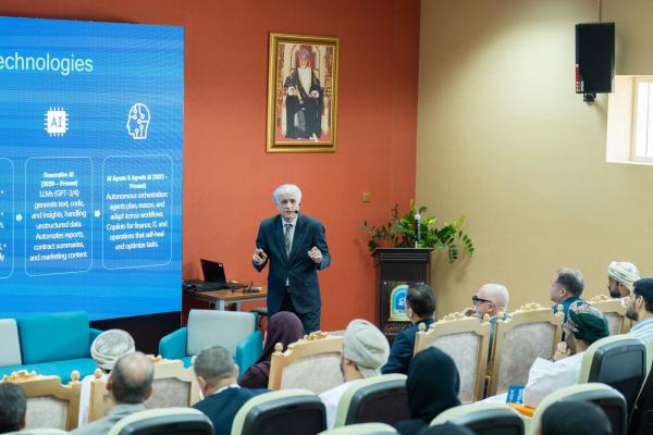 إلى جانب ذلك، قدم الدكتور ضحي الشكيلي، مساعد عميد كلية علوم الحاسوب والمعلومات بجامعة التقنية والعلوم التطبيقية بسلطنة عمان، محاضرة بعنوان: "من مستهلكين سلبيين إلى متعلمين نشطين: كيف نوجه دور الذكاء الاصطناعي في التعليم"، موضحً كيف يمكن للذكاء الاصطناعي أن يسهم في تطوير أساليب التعلم والتفاعل، ويُحدث تحولًا في كيفية استخدام الطلبة للمحتوى الأكاديمي. كما قدم الأستاذ لؤي أبو شاور، عضو المجلس العالمي للذكاء الاصطناعي بكندا، محاضرة حول كيفية الحفاظ على الثقة والحقائق في الأوساط الأكاديمية في ظل التقدم التكنولوجي السريع، وركز الدكتور ماجد العدوان، أستاذ مشارك في جامعة صحار بسلطنة عمان، والدكتورة خديجة البلوشية – خبيرة اعتماد مؤسسي في الهيئة العمانية للاعتماد الأكاديمي وضمان جودة التعليم على أهمية النزاهة في التعليم والبحث العلمي.