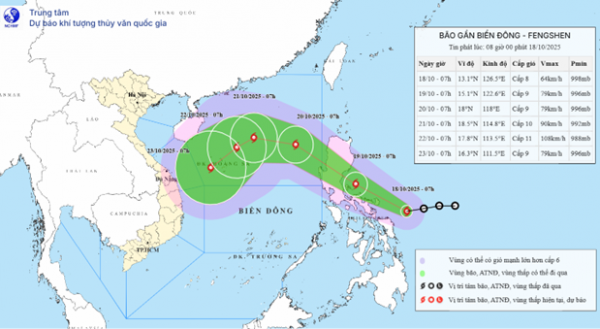 وسيتجه نحو الجنوب الغربي فوق الأجزاء الوسطى والشمالية من بحر الصين الجنوبي، متجهًا نحو الساحل الأوسط لفيتنام قبل أن تضعف شدته تدريجيًا.