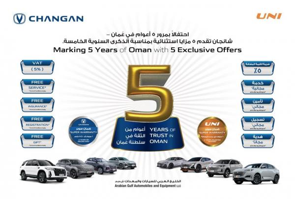 وبهذه المناسبة، أعلنت شانجان عُمان إطلاق عرض الذكرى السنوية الخامسة، والذي يسري حتى 19 ديسمبر 2025، ويشمل مجموعة من المزايا المجانية عند شراء أي من طرازات شانجان الجديدة، والتي تتضمن التسجيل المجاني، التأمين المجاني، حزمة الخدمة المجانية المضمونة، تركيب مخفي النوافذ مجانًا، تغطية قيمة ضريبة القيمة المضافة (5%)، بالإضافة إلى ضمان المصنع السوبر المميز.