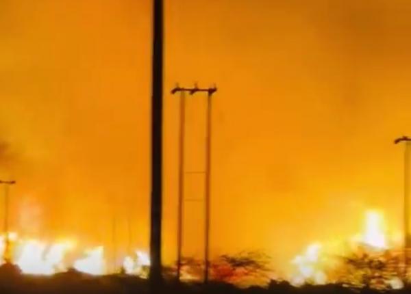 وتواصل الفرق جهودها للسيطرة على الحريق والحيلولة دون انتشاره.