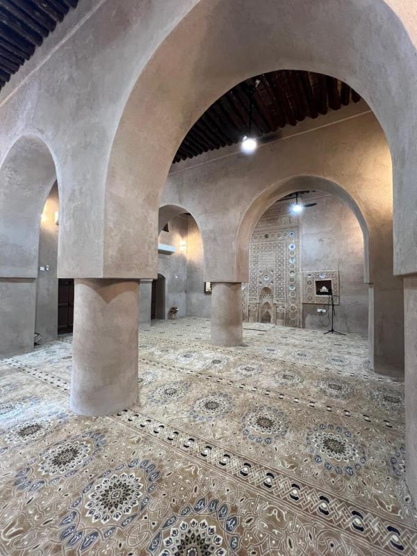 وتضمنت أعمال الترميم إزالة الأجزاء المتأثرة وإعادة بنائها باستخدام الحجارة الأصلية مع تطبيق مواد عازلة للرطوبة، ومعالجة الشقوق في الجدران والأقواس والأعمدة، إلى جانب ترميم الجدران الداخلية والخارجية بمواد تتوافق مع الطابع المعماري الأثري للمبنى، بما يحافظ على الطابع المعماري الأصيل للمسجد ويصون عناصره الإنشائية بما يضمن استدامتها، مع إعادة تأهيل المكونات الداخلية والخارجية بأسلوبٍ يحافظ على قيمته التاريخية والجمالية ويبرز تفاصيله المعمارية الفريدة التي تجسّد فنون العمارة العُمانية الأصيلة.