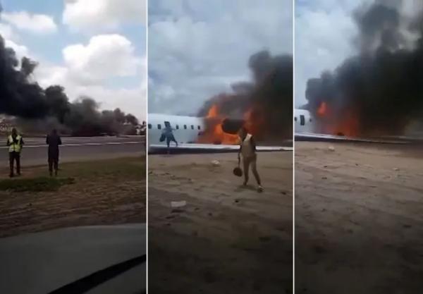 وتمكنت فرق الطوارئ من إجلاء جميع الركاب البالغ عددهم 29 شخصا، بينهم وزير المناجم، فيما احترقت الطائرة بالكامل.