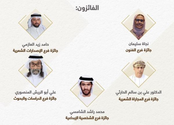 4. فرع "الدراسات والبحوث": فاز الكاتب والباحث علي أبوالريش من دولة الإمارات عن كتابه "زايد عوالم شعرية سقفها المدى"، الصادر عن دار نبطي للنشر عام 2025، وتتناول الدراسة موضوعات رئيسة في قصائد المغفور له الشيخ زايد بن سلطان آل نهيان، طيّب الله ثراه، منها: الأخلاق، والجمال، والمرأة، والحب، والمشاكاة، والشباب، والسلام.