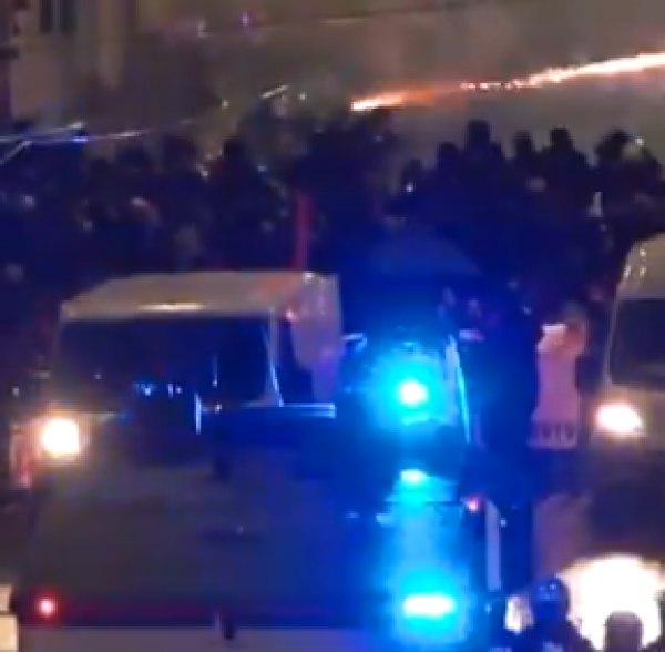 وهتف المتظاهرون ضد إسرائيل ولوحوا بالأعلام الفلسطينية وأطلقوا الألعاب النارية، بينما أطلقت الشرطة مدافع المياه على المتظاهرين.
